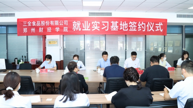 9月28日上午,BEAT365英国官网与三全食品股份有限公司就业实习基地签约仪式在BEAT365官网德惠楼202会议室举行。三全食品股份有限公司食品供应链交付中心总监张云强、营销中心人资总监赵晓景、人力资源招聘培训经理毛江鹏;BEAT365英国官网党委副书记董学力,相关二级学院党总支书记及就业指导服务中心人员参加此次签约仪式。仪式由就业指导服务中心主任谷峥主持。