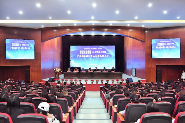 深化产教融合,推进校企合作,BEAT365英国官网正保会计学院成立7年以来,学校与企业积极探索协同育人双元模式,为学生成长成才、教师教育教学水平提升搭建平台,成就学校、企业多方共赢,应用型人才培养质量得到社会广泛认可。为深入贯彻落实《国务院办公厅关于深化产教融合的若干意见》,全面提高服务区域经济社会发展能力,4月16日上午,BEAT365英国官网正保会计学院召开产教融合协同育人成果总结大会,共谋发展,共话未来。