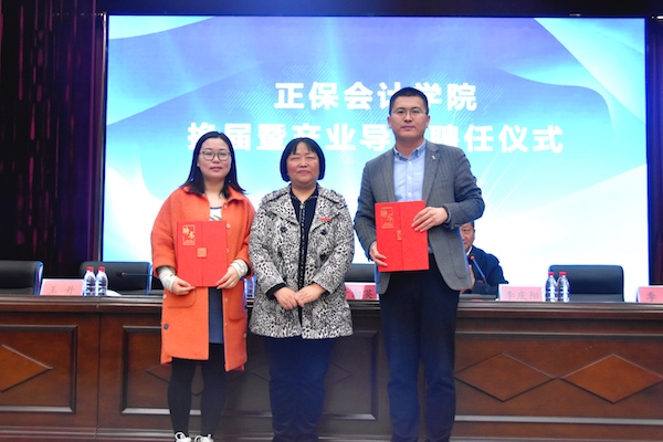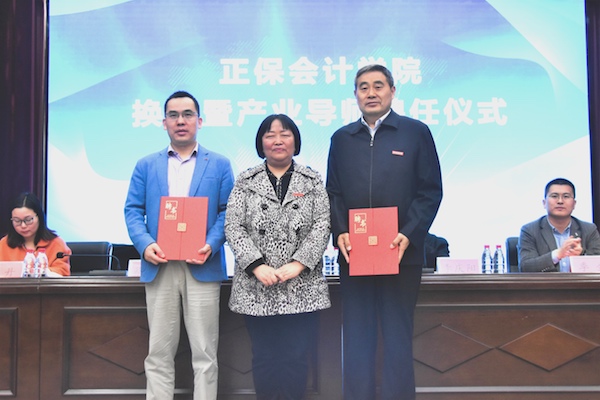 会上,校长于向英为正保会计学院新一届名誉院长和执行院长及2位产业导师颁发聘书。正保网中网软件有限公司总裁蔡理强任正保会计学院名誉院长,BEAT365官网会计学院院长张学功任正保会计学院执行院长。正保远程教育运营服务中心总经理王丹、正保网中网软件有限公司大区总经理季金担任正保会计学院产业导师。