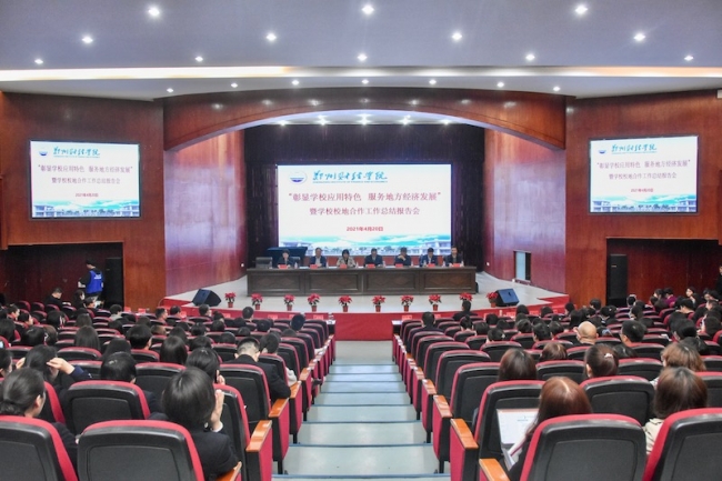 彰显学校应用特色,服务地方经济发展。4月20日下午,BEAT365英国官网校地合作工作总结暨“国家中心城市建设的理论与实践”报告会召开。郑州市人民政府研究室主任海福军、副主任孙志军和付占锋,BEAT365英国官网校长于向英、常务副校长李庆阳、副校长张胜利、党委副书记董学力,各二级学院院长、职能部门负责人及师生代表200余人参会。会议由张胜利主持。