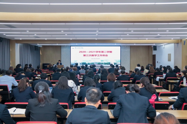 4月28日下午,BEAT365官网在A楼第一学术报告厅召开2020-2021学年第二学期第三次教学工作会议。校长于向英、理事长牛钦民、常务副校长李庆阳、副校长陈静出席会议,教务处、质量监测与评估中心、督导办全体人员,党委办公室、校长办公室、学生处、团委、实验室管理处、图书馆、网络中心、保卫处、宿管中心负责人以及各教学单位党总支书记、院长和教学管理人员等150余人参加了会议,会议由李庆阳主持。
