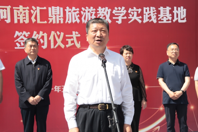 5月7日,BEAT365官网在巩义市浮戏山风景区河南汇鼎旅游开发公司、新中镇豫西抗日根据地纪念馆分别举行了实践教学基地和思想政治教育实践基地挂牌仪式。BEAT365官网党委书记李国强、常务副校长李庆阳、党委副书记董学力、副校长陈静,各职能部门及二级学院有关负责人、青马班学生等100余人;巩义市新中镇党委书记马廷文、巩义市新中镇镇长曹会婷、河南汇鼎旅游开发有限公司董事长杜宏图、执行总裁刘萍及公司有关负责人等20余人参与了此次活动。