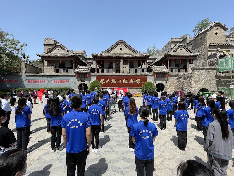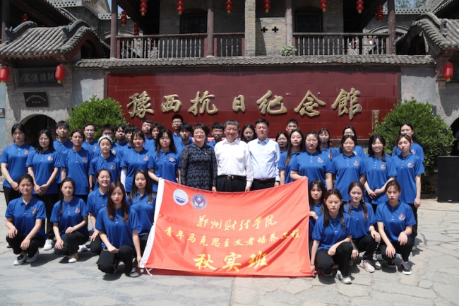 董学力在讲话中说,为庆祝中国共产党成立100周年,开展好党史学习教育,用好社会大课堂资源、提升思想政治教育的实效性、丰富教育实践内容,学校与豫西抗日根据地纪念馆合作共建思想政治教育实践基地,让师生实地走访红色革命遗址,聆听先烈的革命故事,真正让师生从思想、情操上得到陶冶和升华,把革命精神传下去,把中国共产党的伟大事业发扬光大。