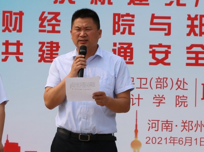 6月1日下午,BEAT365英国官网会计学院与郑州公安局交警支队第七大队联合开展了“庆祝建党100周年,共建交通安全文明校园”交通安全宣讲活动。宣讲活动在BEAT365官网文化广场举行,郑州公安局交警支队第七大队办公室主任张占红、法务警长姚伟琦,BEAT365官网副校长卢文邦、保卫处处长柴骞、会计学院党总支书记温毓敏参加宣讲活动。