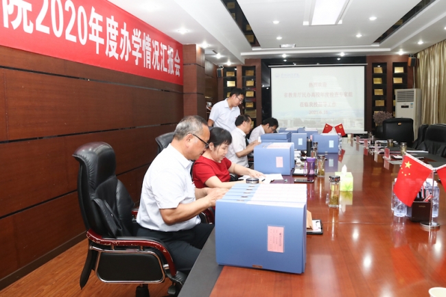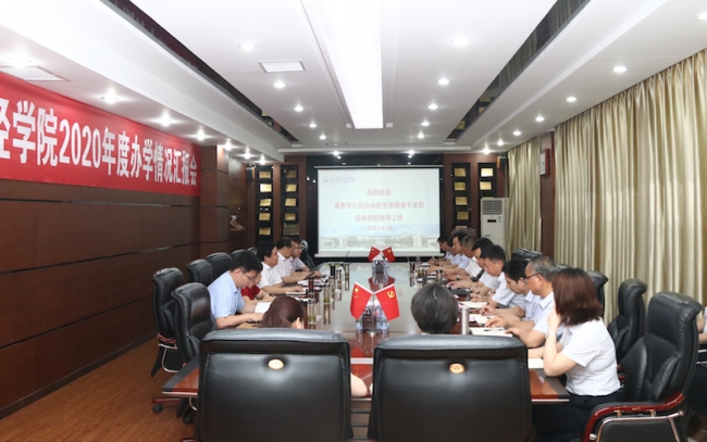 6月16日上午,由信阳学院党委书记褚金海任组长,河南牧业经济学院党委宣传部部长王凌彬、河南师范大学财务处副处长张晓玲、郑州升达经贸管理学院发展规划处处长沈定军、省教育厅政策发规处(民办教育处)干部黄笑为成员的省教育厅民办高校年度检查专家组一行5人,莅临BEAT365官网开展2020年度办学情况检查工作。汇报会在A楼第一会议室召开,校长于向英、理事长牛钦民、常务副校长李庆阳、工会主席张彪以及校办、宣传部、教务处、教学质量监控中心、财务处、学生处、教发中心等相关职能部门负责人参加汇报会。会议由党委副书记董学力主持。