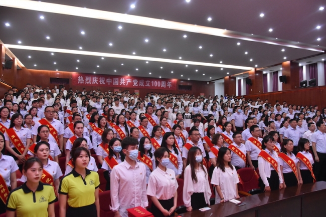 李国强作重要讲话。他回顾了中国共产党带领人民开天辟地完成救国大业、改天换地完成兴国大业、翻天覆地推进富国大业、惊天动地实现强国大业的光辉历史,追忆党走过的100年艰辛而辉煌的风雨历程,勉励每一位共产党员始终牢记党的宗旨,赓续红色血脉,发扬光荣传统,发挥先锋模范作用,不断激发前进动力,汇聚起全面建设社会主义现代化国家、实现中华民族伟大复兴中国梦的磅礴力量。他充分肯定了学校各级党组织和广大党员干部在学校教育教学事业发展进程中做出的积极贡献,并号召我们继续深化党建引领,真正实现党建工作与业务工作的相互促进、协调发展;深入推进思政课建设,全面构建全员全程全方位的“三全育人”大格局;聚焦学校中心工作,充分发挥党组织的战斗堡垒作用和党员的先锋模范作用,为学校事业高质量发展、跨越式发展贡献智慧和力量。