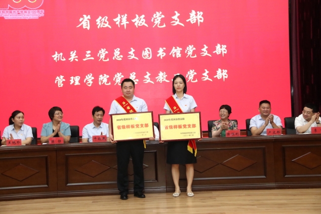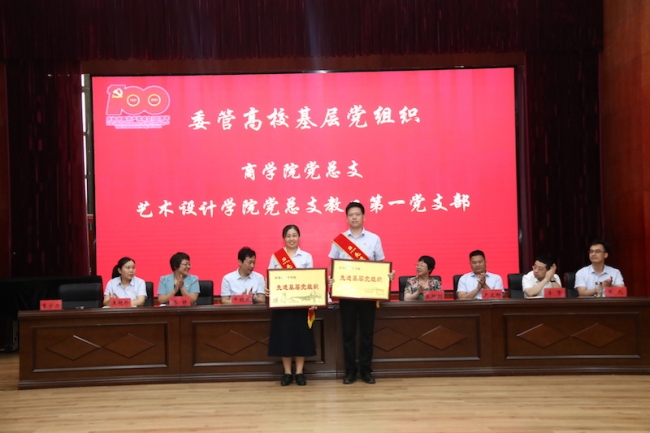随后,校党委书记李国强、校长于向英为受到表彰的“委管高校先进基层党组织”“省级样板党支部”颁奖。商学院党总支和艺术设计学院党总支教工第一党支部荣获“委管高校先进基层党组织”,机关三党总支图书馆党支部和管理学院党总支教工党支部荣获“省级样板党支部”。