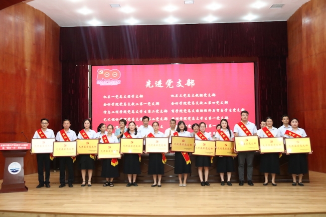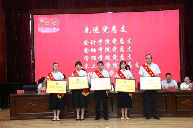 会计学院党总支、金融学院党总支、管理学院党总支、土木工程学院党总支和机关二党总支荣获“先进党总支”;机关一党总支团学党支部、会计学院党总支教工第一党支部等12个党支部荣获“先进党支部”;谷峥、郑留燕、徐静、张利等27人被评为“优秀共产党员”,郭胜国、马丽丽等17人被评为“优秀党务工作者”。校领导依次为受到表彰的集体和个人颁奖。