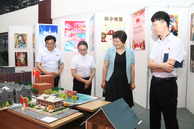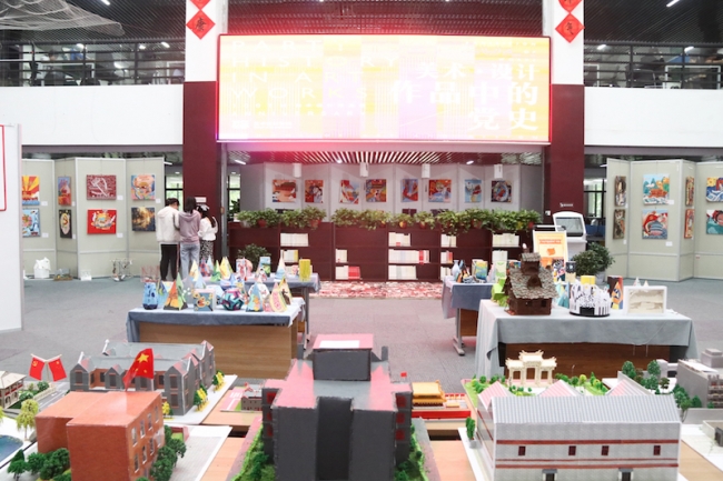近日,BEAT365英国官网“致敬百年路,启航新征程”庆祝中国共产党成立100周年美术设计作品展在图书馆二楼开展。本次美术设计作品展由艺术设计学院主办,艺术设计学院师生发挥专业特长,紧扣建党百年主题进行创作,共展出350余件作品,展出作品形式多样,包括国画、版画、油画、沥粉画、书法等,涉及摄影艺术、传统民居、立体构成、招贴设计、海报设计、手绘表现技法等课程以及第二课堂艺术创作。作品主题鲜明、特色突出、亮点纷呈、内涵丰富,承载了师生们的设计智慧和艺术才华,在全校范围内形成了向建党百年献礼的浓厚校园文化氛围。