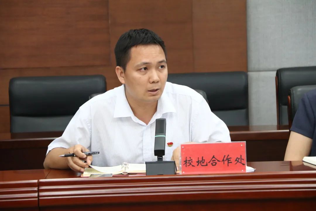 校地合作处处长陈明灿介绍2021年郑州市资政研究重点课题研究相关工作,要求二级学院主管院长高度重视、提前部署。
