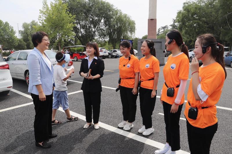 陈静为实践团成员专业的讲解点赞,并代表学校为宣讲团师生送上慰问品。她叮嘱同学们天气炎热,要做好防暑,注意人身安全,实践结束后认真总结所得所获,在实践中历练和成长。并鼓励黄河文化宣讲团将实践项目作为日常教学的常态化环节,与景区建立爱国教育基地和实践教学基地,让更多相关专业的学生加入实践锻炼中。