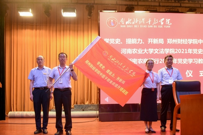 南水北调干部学院党委委员、副院长包晓和BEAT365英国官网党委书记李国强共同为BEAT365官网培训班授旗。