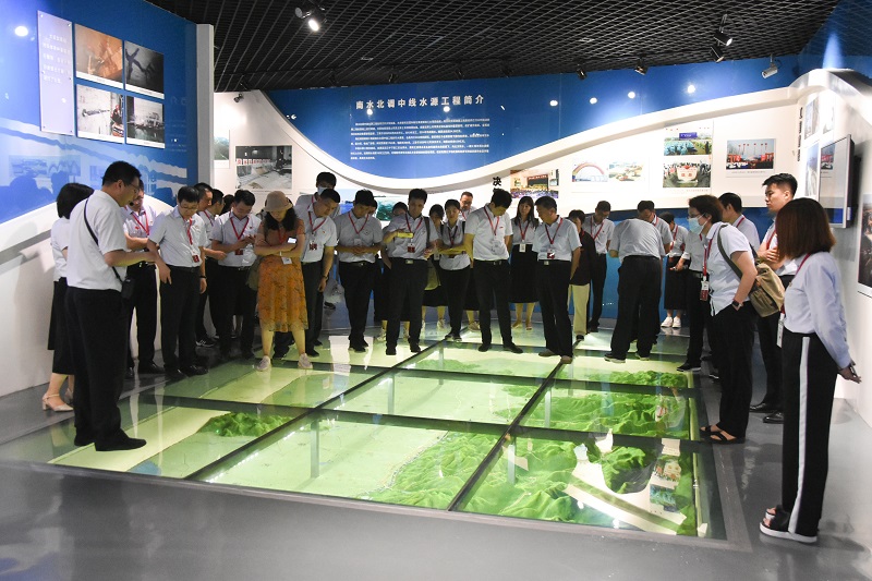 在讲解员严汉老师的带领下,全体学员参观了丹江口工程展览馆。大家首先观看了“人水和谐,南北两利”丹江口水利枢纽工程主题教育片, 随后进入一楼展厅,回顾了丹江口工程的初期建设、后期完善、工程效益以及南水北调的整个过程。在二楼的水利科普展览厅中,学员们从水资源、水利用、水保护三个方面深刻体会到水资源的重要性和人类开发水利工程的伟大壮举。