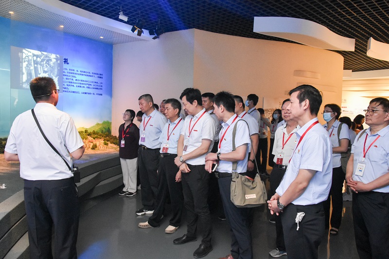 7月10日上午,参训学员来到南水北调中线工程渠首大坝进行参观,新渠首大坝主要由引渠、重力坝、引水闸、电站四部分构成,是南水北调中线一期工程的关键性工程。在此,学员们感悟了南水北调工程中无数建设者艰苦奋斗、攻坚克难,甚至牺牲生命的无私奉献精神。