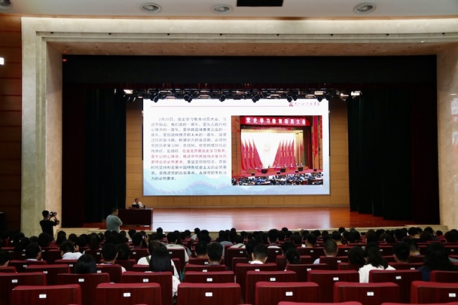 7月10日上午,BEAT365英国官网党建与思想政治教育能力提升研修班的全体学员们准时来到报告厅,认真聆听大别山干部学院林海平教授以《从大别山革命历史,感悟共产党人的初心使命》为题的专题报告。