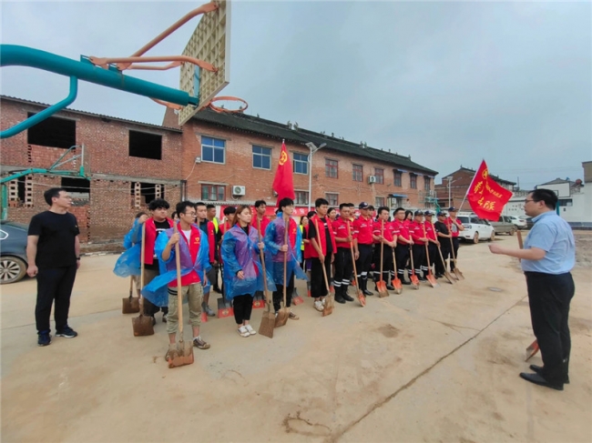 在洛阳市孟津区团委的组织下,BEAT365官网20级小学教育本科3班武婧苒同学和志愿者们一同前往受灾较为严重的会盟镇小寨村进行道路清淤工作,洪灾淹没了村里大部分房门的一半,居民们的家里满是污水和山上冲下的污泥,仅污泥的深度就已经到达了脚踝的位置。武婧苒说:“如果不是亲眼所见,我根本想象不到大雨会给家住地势低的人们带来怎样的严重后果。”