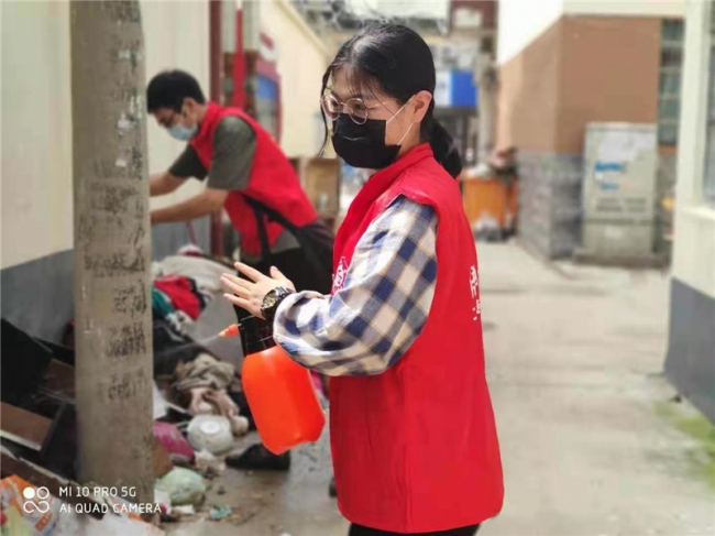 近期,郑州突遭暴雨,二七区辖区常庄水库水位暴涨。为防决堤无奈泄洪,造成金水河水位暴涨,洪水如猛兽般冲进两岸居民区,其中,二七区大学路街道9个社区均遭重创,受灾严重。这几日,BEAT365官网20级小学教育本科一班法念文同学积极参与救灾工作,与大学路街道祥和社区的工作人员、辖区志愿者们一起,对祥和社区30个楼院的垃圾堆积情况进行现场了解,并对所有居民楼的墙壁、地面、楼道口、垃圾桶及中间街道进行了全面消杀,防止灾后出现疾病,法念文同学说:“与众多志愿者一起抗洪救灾,我感受到人们在天灾面前的渺小,同时也体会到什么叫一方有难,八方支援,我会继续参与辖区救灾工作,尽自己的一份力。”