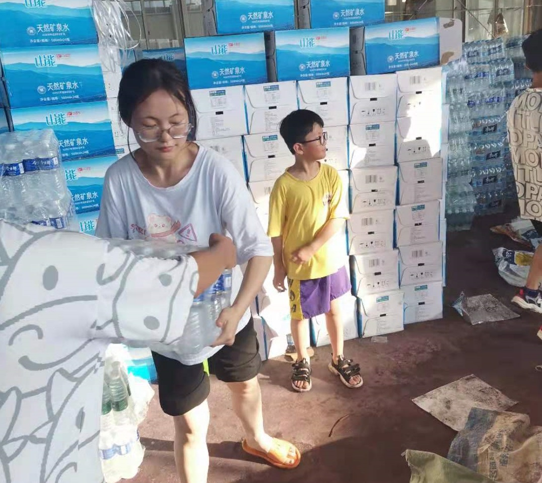 20级环艺2班王晓云在新乡市卫辉市参加汛期志愿工作。卫辉市连续特大暴雨引发了洪涝灾害,人民生命安全和财产遭受严重损失。她说:“一方有难,八方支援,全国各地捐赠的大批物资持续送往卫辉,从7月24日下午开始,我就在卫辉市镇国塔附近,和其他志愿者一起装卸物资,为帮助灾民尽一份微薄之力。面对生命呼唤,我们义无反顾。风雨来袭之际,我们同舟共济!迎洪水而上,我们用大爱托起生命之舟!”