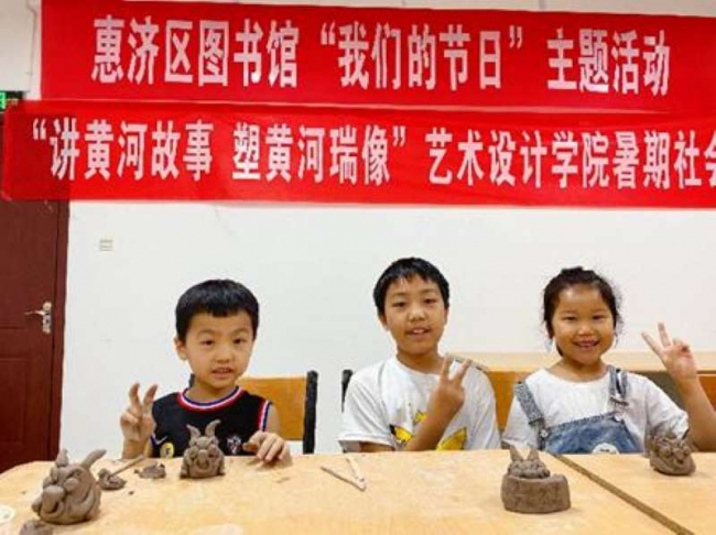 7月14日至25日,艺术设计学院“河小艺”黄河文化研学社会实践团在王芳老师的带领下前往黄河金沙泥艺术工作室开展了以“讲黄河故事,塑黄河瑞像”为主题的社会实践活动。实践团成员们在非遗传承人王玲的指导下,学习了黄河瑞兽的制作技艺,随后分别赴天河社区、黄河文化艺梵研习所、惠济区图书馆以及王砦村向500余名中小学生和社区群众宣讲黄河文化,并向中小学生教授黄河泥塑技艺,让小朋友们在制作黄河瑞像的过程中感受黄河非遗的魅力。活动期间,实践团专访了河南省非遗传承人张慧,了解了黄河文创产业的发展现状和方向。此次实践活动中,实践团成员们以实际行动弘扬了非遗精神,推动了黄河文化精神的薪火相传,同时面对郑州特大暴雨,实践团积极投身防汛救灾志愿服务之中,贡献青年力量。