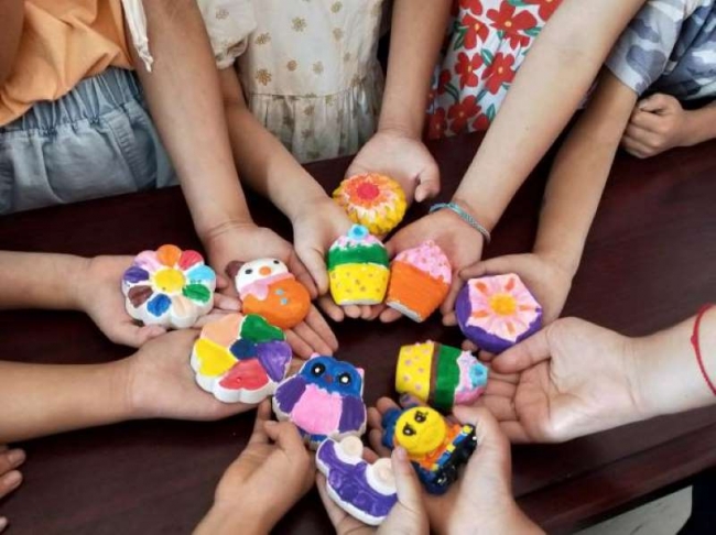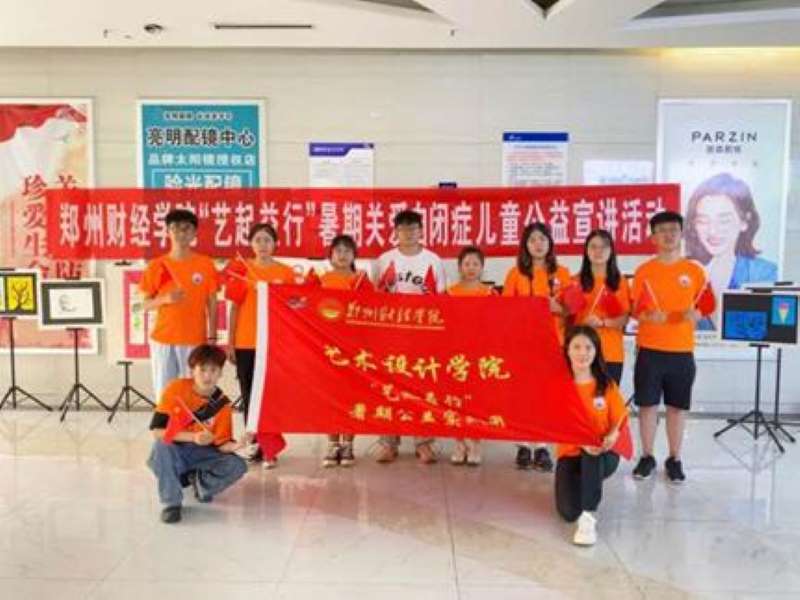 7月12日至17日,艺术设计学院11名学生在指导老师司琳琳的带领下组成“艺起益行”暑期社会实践团,走进郑州市惠济区厚德康复教育中心,携手以“让爱来,让碍走”为主题的“双百护星计划”公益项目,开启了为期7天的“关爱自闭症儿童”暑期调研活动。实践团成员们除了分组进班参与厚德康复教育中心的课程外,还利用晚上休息时间进行备课,他们根据自闭症儿童的动手能力与接受能力,以自身专业特点为基础,切实有效地通过绘画、手工、绘本故事演绎等多种艺术形式来疗愈孩子们的心灵。在成员们耐心的引导和帮助下,孩子们完成了以“建党百年”为主题的蜡笔画,以及“童”心向党为主题的集体绘画创作和“守护星星”为主题的掌印彩绘等课程,进一步融入了社会的大环境中。