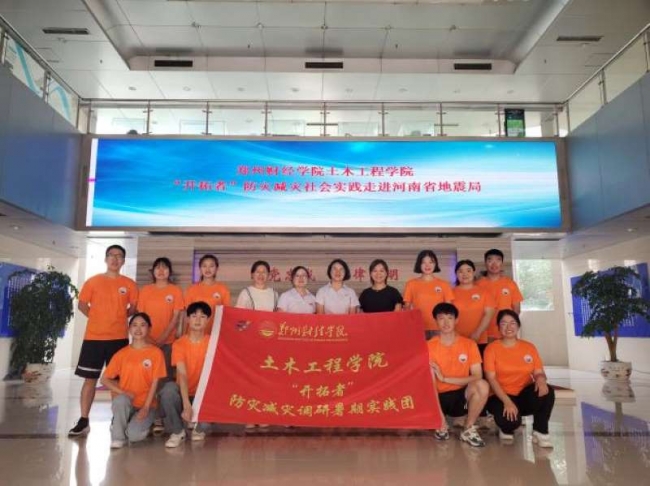 7月12日至19日,土木工程学院“开拓者”防灾减灾暑期社会实践团在李欣聪、杜建莉老师的带领下在郑州市中牟县集结。“开拓者”实践团先后开展问卷调查,掌握当地群众对防灾减灾知识的了解情况。同时,走进河南省地震局,汲取专业知识,切实学习科学防灾减灾。本次“开拓者”防灾减灾社会实践活动,通过走访蔡庄坡村、赴大潘庄党群服务中心等地进行宣讲科普小课堂,以多种形式进行防灾减灾知识宣传,将贯彻科学防灾减灾意识落到实处。“开拓者”实践团还走进河南省自然博物馆的地震海啸剧场,亲身体验由高科技模拟出的5D地震现场,以此次体验的真情实感为基础拍摄逃生技巧科普视频,进一步提高社会防灾减灾意识。经过为期八天的社会实践活动,实践队员们更加坚定了未来为祖国的防灾减灾事业贡献青春力量的意志和决心。