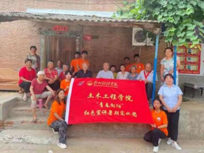 7月15日至22日,土木工程学院“青春向阳”红色宣讲暑期社会实践团在司瑞琴老师的带领下走进焦作市温县,采取线上会议和线下走访宣讲相结合的方式,开展了为期8天的暑期实践活动。宣讲团成员线上结合家乡的红色元素,以微视频的形式宣讲,奋战在家乡党史学习教育的最前线;线下以党史故事为主基调,在村委会、党支部、敬老院、志愿者服务中心等地方开展党史宣讲活动,累计宣讲达20余场。活动期间,通过开展党史快问快答、与村民共唱红歌等新颖形式宣传党史知识。此次社会实践活动中,21名宣讲成员,用朴实的言语,真挚的情感把党史学习教育全方位、多角度、立体化地融入到基层中去,为基层群众的党史教育贡献了自己的青春力量。