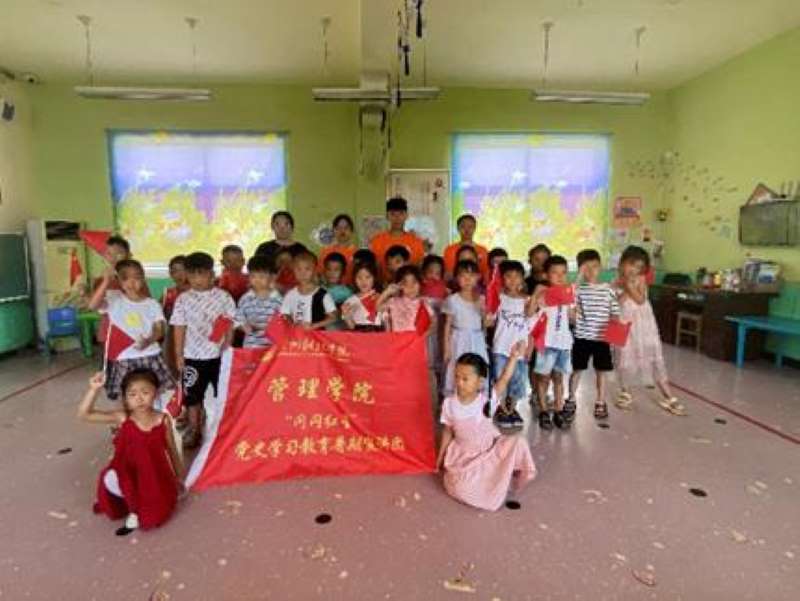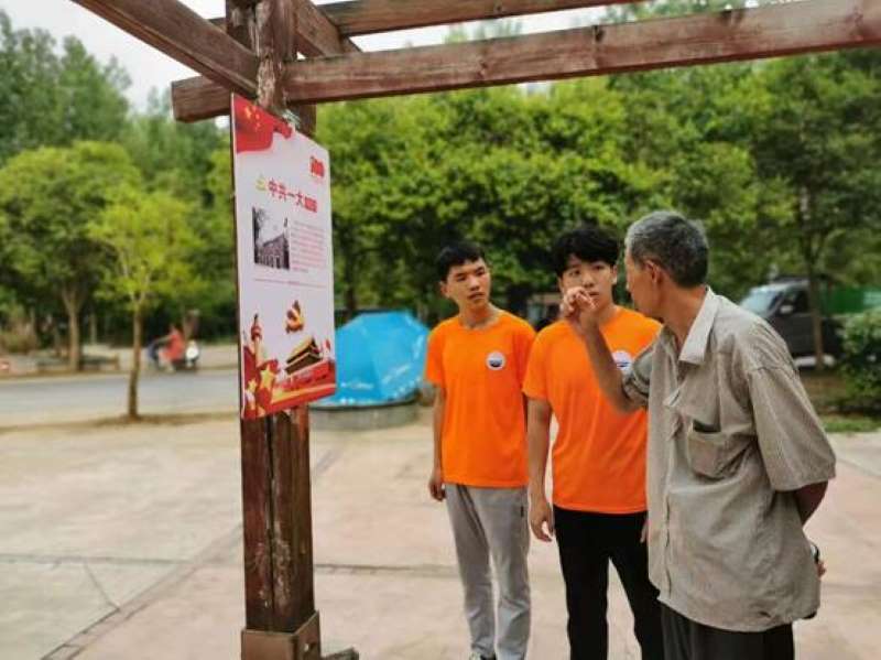 7月11日至18日,管理学院“闪闪红星”党史学习教育暑期宣讲团在李爽老师带领下分赴驻马店、周口、郑州、南阳、新乡、中牟等9地开展了为期8天的党史教育宣讲活动。宣讲团采用线上与线下相结合形式紧紧围绕建党100周年进行党史知识宣讲。线上利用短视频官方媒体平台,进行视频形式宣传;线下组织成员走访慰问老党员,深入学校、社区、村庄发放宣传手册和调查问卷,开展党史教育课。此次活动,线下宣讲共计开展20余次,共发放宣传资料1000余份,制作的条幅覆盖9个地市村庄、社区,线上推送宣讲教育视频共计10余个,推送学习次数2000余人次,活动受益人数达4000余人。通过此次活动,宣讲团成员发挥了当代大学生的社会责任与担当,为新时代播撒了爱国的种子,厚植人们的爱国主义情怀。