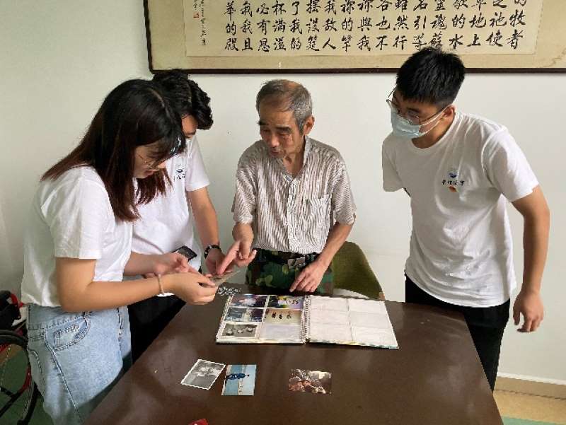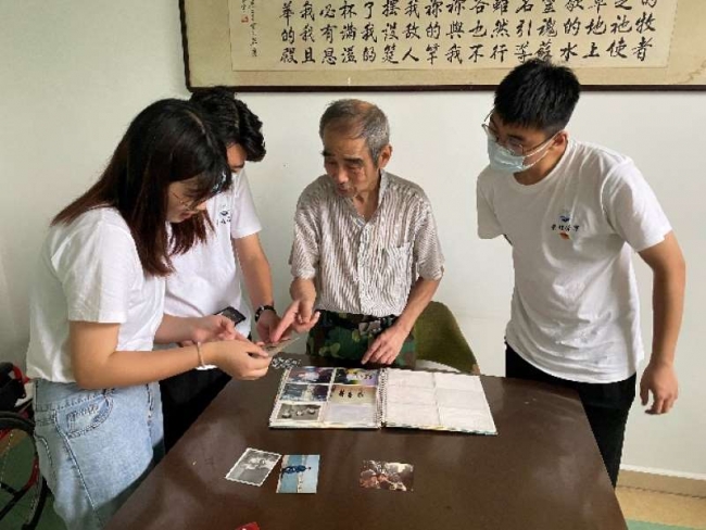 老人向实践团成员分享照片