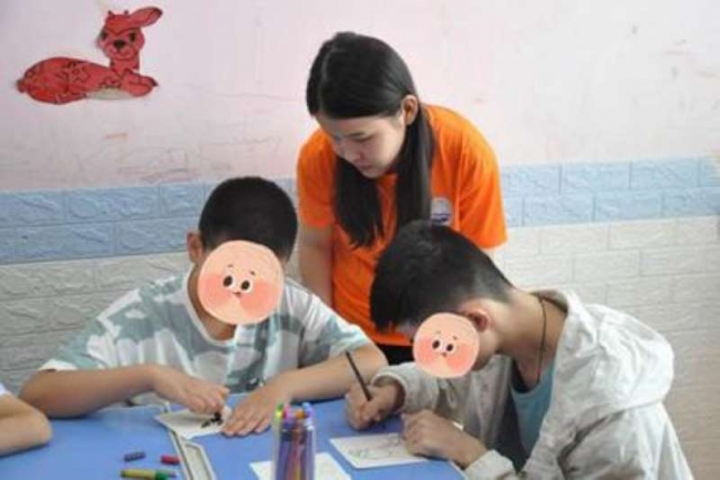 实践团成员辅助“星星的孩子”进行绘画创作