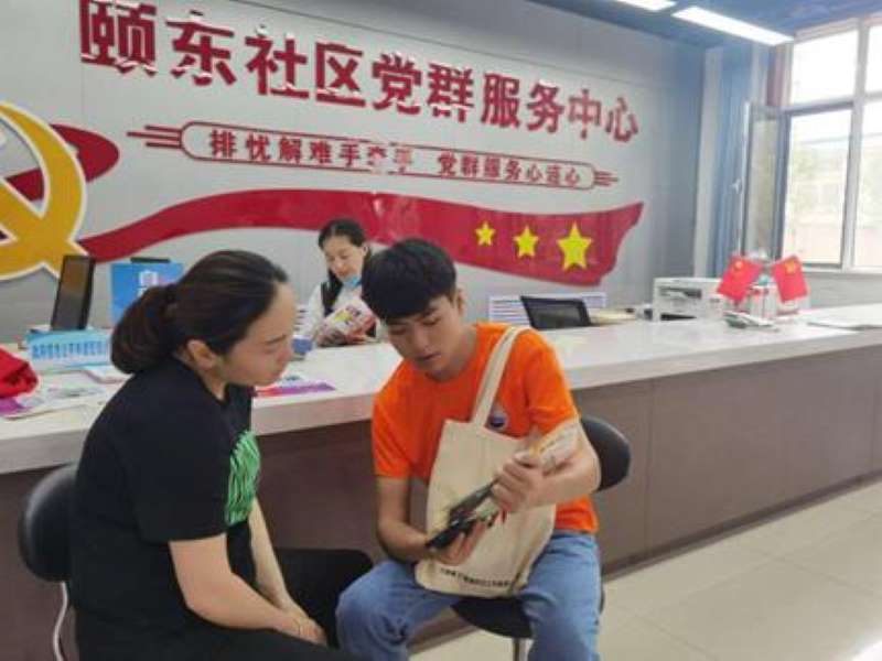 志愿者焦凯晨为居委会工作人员讲解禁毒防艾知识