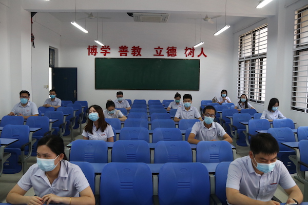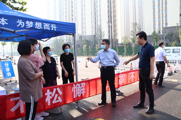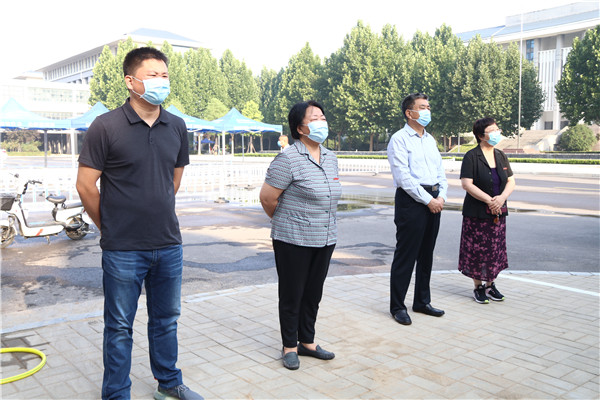 上午8时,校党委书记李国强、校长于向英来到应急演练现场指导工作,并对演练提出具体要求。疫情防控工作领导小组成员、各工作组及参演教师在前期预演基础上,有条不紊地开展应急演练。首次演练包括进校、入寝、就餐、上课四个场景,整场演练各部门通力合作,分工明确,责任到人,参演教师按照应急演练的路线和要求,熟练掌握和演示各场景下的疫情防控要求和应急处置流程。