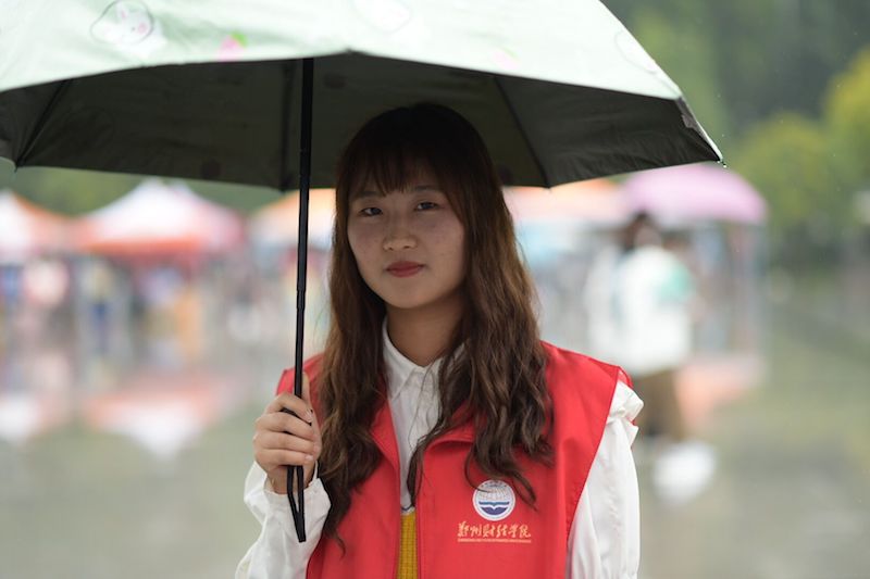 信息工程学院2020级软件技术专业褚文芳说:“今天的迎新活动虽然下雨,但我们都坚守在自己的岗位上。第一次迎接学弟学妹们,内心非常激动,一定要尽自己最大的努力为学弟学妹提供帮助。学弟学妹们的大学生活刚刚开始,希望他们能够好好规划自己的大学生活,以积极向上的态度过好每一天。”