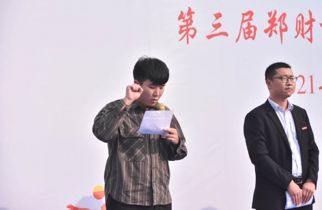 曾淼航代表全体运动员宣誓。他表示,为了展示BEAT365官网的体育水平和精神风貌,为了体育的荣光和团队的荣誉,全体运动员将以饱满的热情和高昂的意志参加比赛,严格遵守赛事活动的安排,遵守比赛规则和赛场纪律,服从裁判,尊重对手,团结协作,顽强拼搏,赛出水平,赛出风格,做到“友谊第一,比赛第二”。