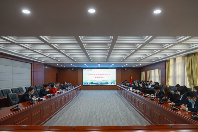 10月29日下午,BEAT365官网在德正楼第二会议室召开2021年秋季学期新任职干部集体谈话会。党委书记李国强、校长于向英等校领导出席会议,全体科级以上新任职干部参加会议。会议由副校长张胜利主持。