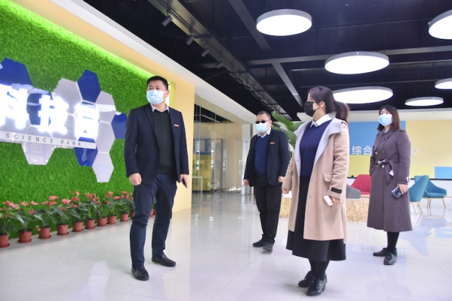 在大学科技园检查疫情防控工作