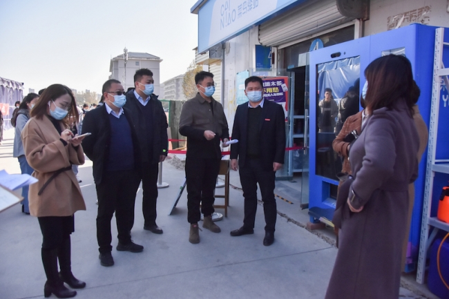 卢文邦一行在“菜鸟驿站”检查疫情防控工作