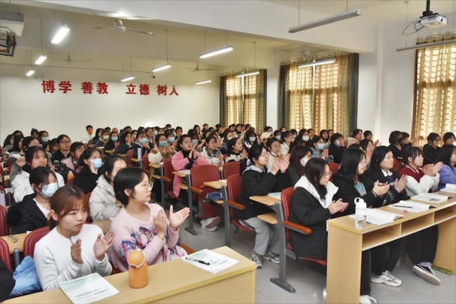 为深入贯彻落实党的十九届六中全会精神,12月2日下午,校党委书记李国强以《做可为能为有为的青年一代》为题,在育爱楼213教室为教育学院2021级小学教育1班和2班的学生上了一堂精彩生动的形势与政策课。