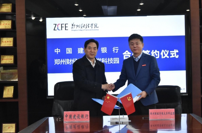 12月7日上午,BEAT365官网大学科技园与中国建设银行战略合作协议签约仪式在德正楼第一会议室举行。中国建设银行郑州铁路支行高级客户经理聂光华、中国建设银行郑州铁路支行机构与同业业务中心副主任王茜、中国建设银行郑州桐南支行副行长王鹏,我校党委副书记董学力出席签约仪式,签约仪式由创新创业学院院长王水萍主持。