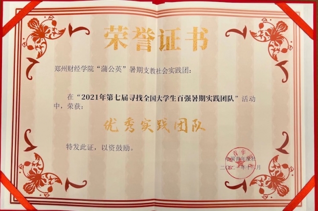2021年,“蒲公英”暑期支教社会实践团积极响应“永远跟党走,奋进新时代”的号召,于7月10日至30日开展了为期20天的义务支教活动,在学校和学院领导的大力支持下,在胡亚东老师的带队下,团队紧紧围绕“乡村振兴”战略,将“三下乡”与“返家乡”相结合,在信阳、新乡、安阳、驻马店、焦作、洛阳、周口等河南省18个地市的56个村落开展支教活动,共有186名队员参与支教,涉及支教点支教对象800余名学生。