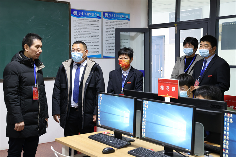 比赛期间,学校领导及出席大赛的专家评委来到赛场,观看选手竞赛情况。