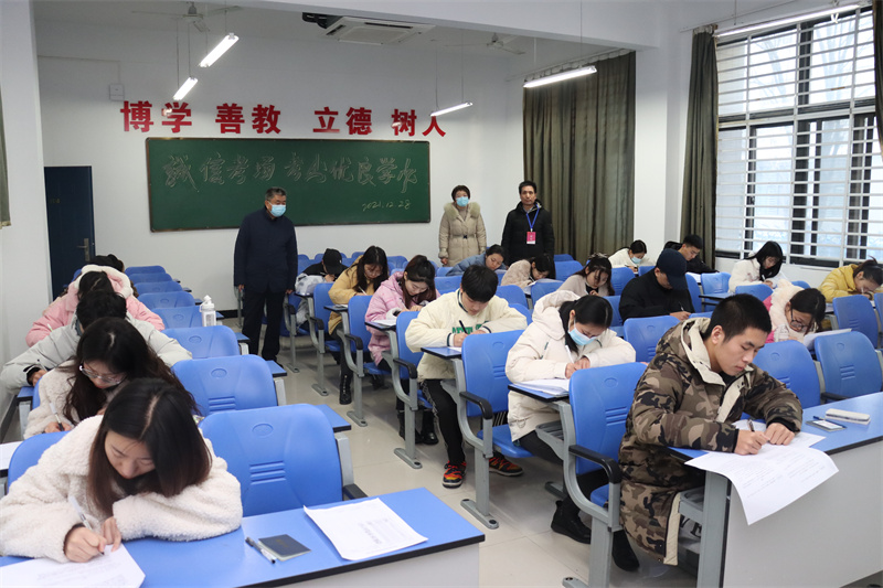 考试期间,校党委书记李国强等校领导深入考场,巡视“诚信考场”考试情况。