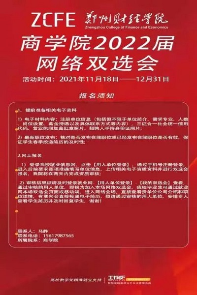 组织开展“就业创业活动月”系列活动。形成校园招聘会、就业指导服务活动、职业生涯规划活动、创新创业活动四大活动板块。开展第十二届大学生职业生涯规划大赛,吸引近800名学生广泛参与,大赛历经海选、各二级学院选拔赛、校级预决赛,最终有10名选手进入校级决赛。为嘉奖选手,激励更多学子参与大赛规划未来,学校对获奖选手、优秀指导教师、优秀组织单位分别给予奖励。并推选5名同学参加2021年河南省大学生职业生涯规划大赛豫东分赛区的比赛,最终获得二等奖1项、三等奖3项,优秀奖1项。
