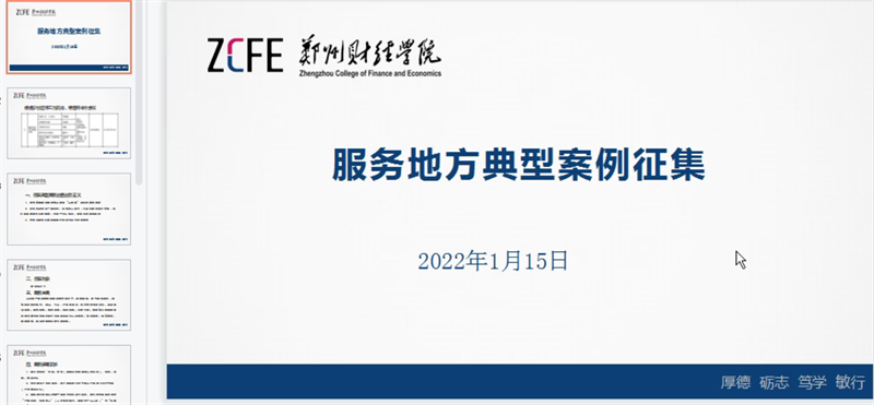 科研处副处长刘玲玲就“服务地方”评估工作中服务地方典型案例的要求和标准进行了详细解读。她从产教融合和科教融合两个一级指标入手解读高校如何服务地方,并具体从服务企业、服务地方政府、服务社会机构、服务社区、服务创新创业、服务河南建设内陆地区对外开放高地开展的国际合作交流等六个二级指标以及对应的二十八个观测点作了详细介绍,使与会人员对高校服务地方有了较为系统和全面的认知。她表示,征集典型案例的目的是梳理、强化BEAT365官网产教融合、科教融合工作,加快推进BEAT365官网产教融合协同育人工作,打造科教融合新特色,展示BEAT365官网的亮点成果和创新探索,要形成一批可复制的发展经验,为BEAT365官网本科教学工作合格评估提供一个特色支撑。