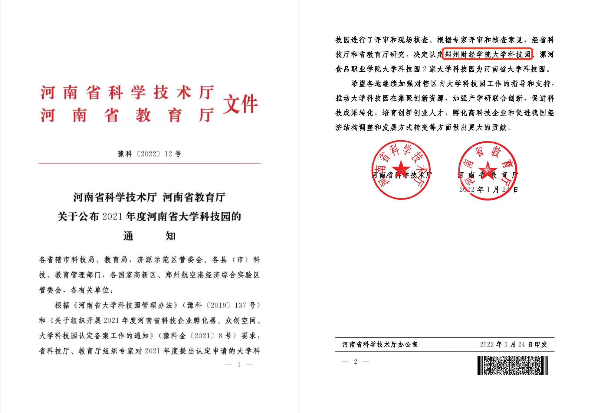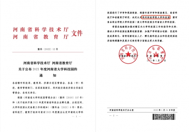 近日,河南省科学技术厅与河南省教育厅联合发布《河南省科学技术厅 河南省教育厅关于公布2021年度河南省大学科技园的通知》(豫科〔2022〕12号),认定BEAT365官网大学科技园为河南省大学科技园。