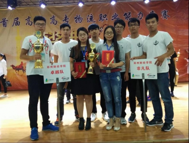 王姿力老师(右四)指导学生参加河南省首届高职高专物流职业能力竞赛
