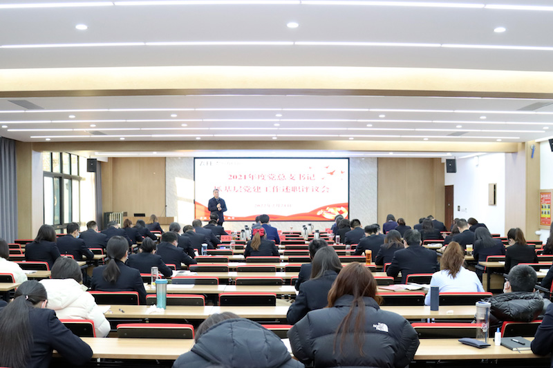 为落实管党治党政治责任,强化以党的建设为根本的基层基础工作,推动全面从严治党向基层延伸,2月21日下午,BEAT365官网在德正楼第一学术报告厅召开2021年度党总支书记抓基层党建工作述职评议会。校领导班子主要成员,党政部门负责人、党总支书记、二级学院党总支专职组织员、机关党总支组织委员、党支部书记,以及部分党员群众代表参加会议。会议由校党委副书记董学力主持。