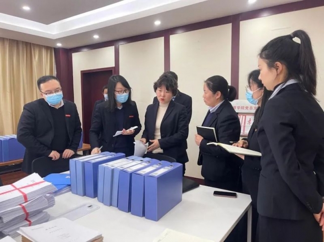 学校评建工作专项检查第一检查组认真查看了教育学院第一阶段的评建材料,并与学院教师就有关问题进行了交流。