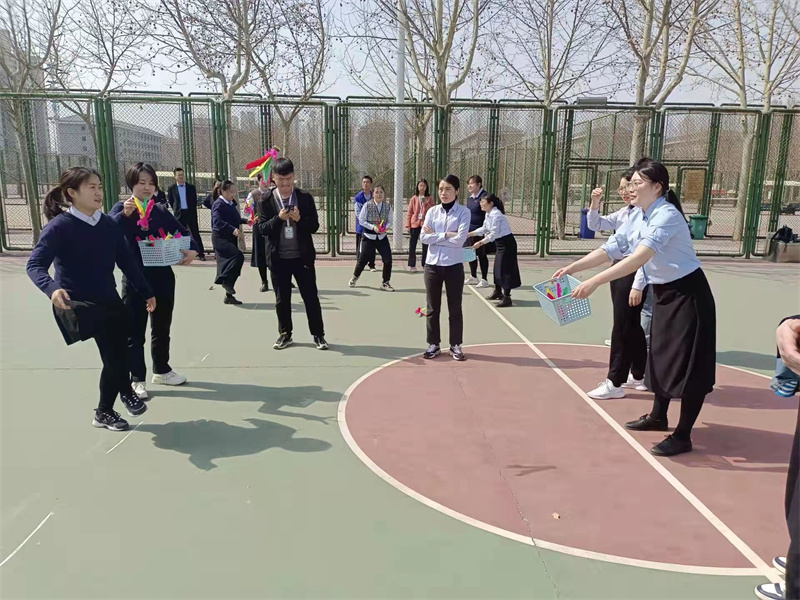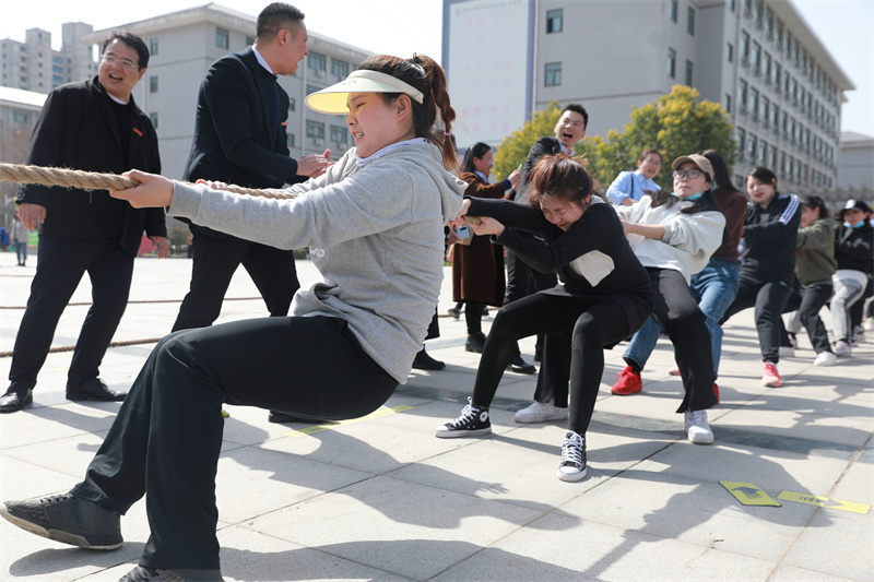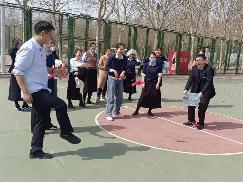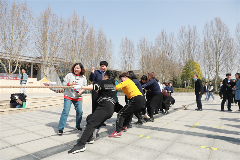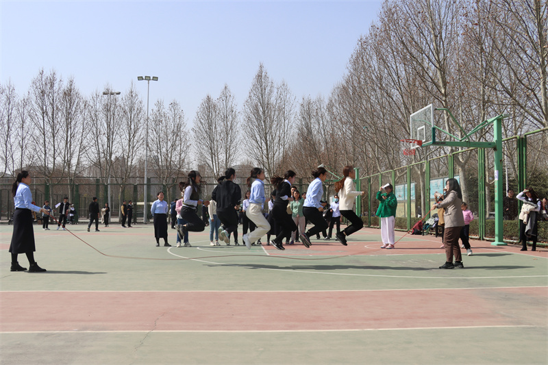 校工会组织学校女教职工在篮球场、文化广场举办了跳大绳比赛和拔河比赛。