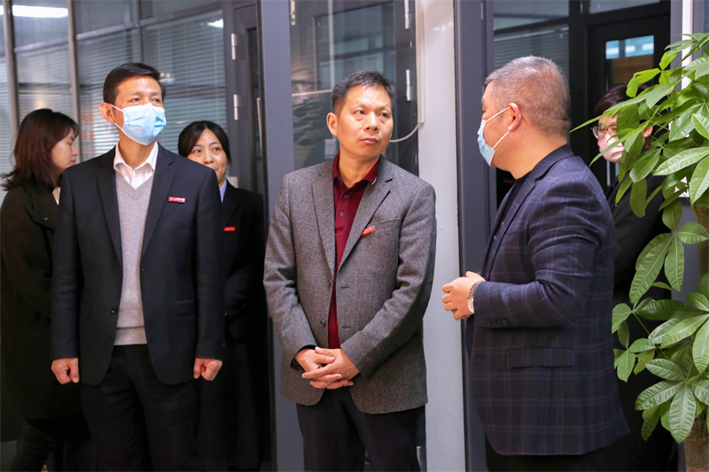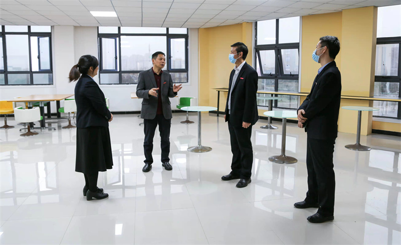 王能民校长一行先后参观了BEAT365官网教育部科学工作能力提升计划实训示范基地(百千万工程)和大学科技园,听取了实训基地及大学科技园的基本情况介绍,实地走访了大学科技园服务大厅、众创空间、路演大厅、孵化器等场地,与花曼轩、校园令、景佑、河南仙鸟、中原华尔等入驻企业负责人进行了深入交流。