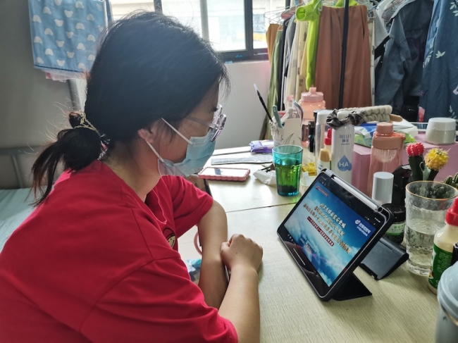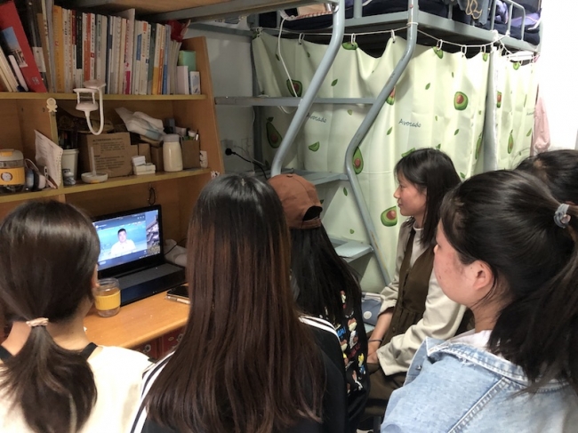 学生在宿舍观看直播